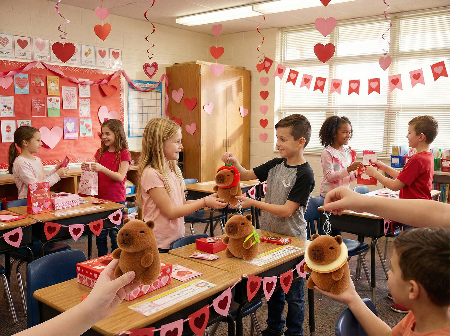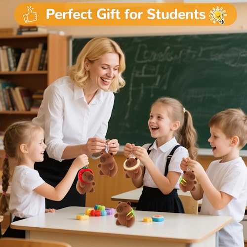 - 4 Adorable Capybara Plush: This set includes 4 ultra-soft capybara plush keychains in different poses and outfits, creating a fun mini-collection of capybara toys for kids, teens, and capybara lovers of all ages—perfect valentines for students. Easy to pair with Valentine cards and candy bags to make cute, ready-to-give classroom Valentine gifts.